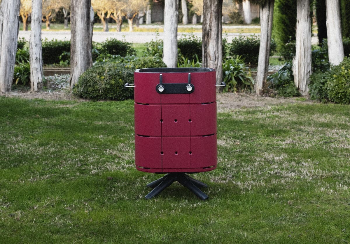 Cet appareil en acier Corten sert à la fois de grill, de plancha (en inox alimentaire), de brasero et de table pour 6 personnes. Un sur-plateau central en option permet de recouvrir l’espace cuisson pour en faire une table pleine. Pour le façonner selon votre goût, vous pouvez choisir la hauteur du pied, la forme du plateau et le combustible (bois, charbon de bois, gaz).