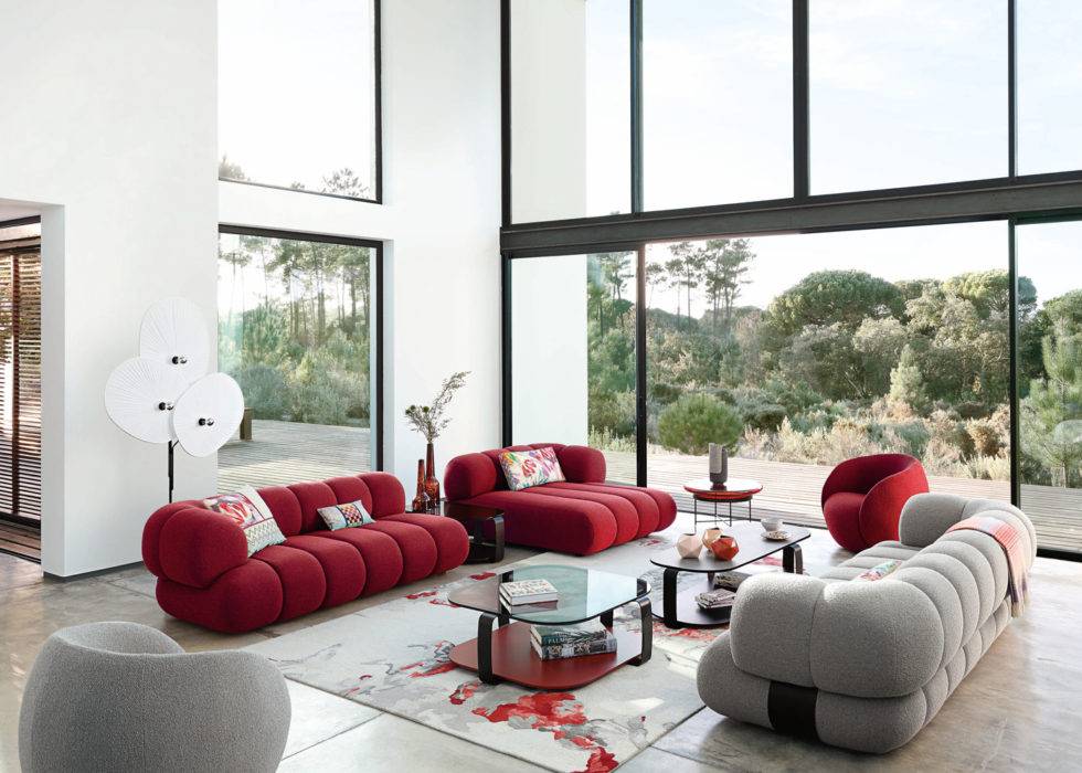 Ses lignes harmonieuses font référence à Niemeyer et aux trottoirs en céramique de la célèbre plage de Rio. Canapé « Ipanema », L230 x P103 x H84 cm, design Didier Gomez, à partir de 5 190 €, Cinna.