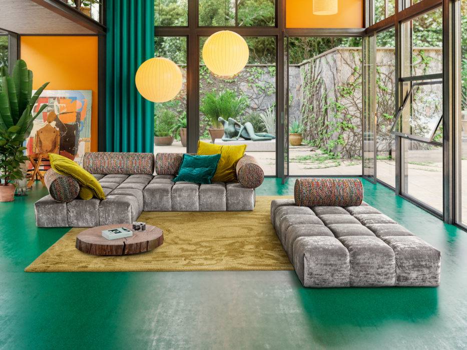 Des formes généreuses inspirées par le mouvement d’avant-garde des années 50. « Julep », L240 x P126 x H75 cm, contreplaqué peuplier et bouleau, sangles élastiques, tissu, mousse froide. Design Jonas Wagell pour Tacchini, à partir de 5 498 €, chez RBC Mobilier.
