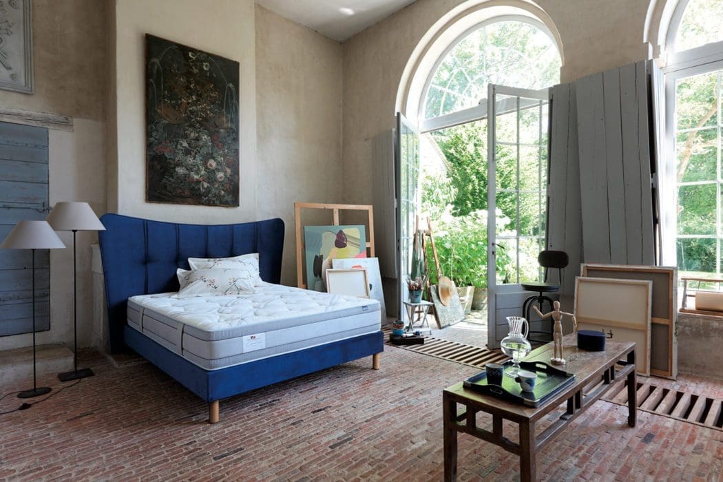 03 – Classique. Tête de lit « Venise » et matelas « Séduction » avec 7 zones de confort ergonomique et 2 faces de couchage, 100 % latex, disponible en 2 densités. Tête de lit 1 298,70 € et 2 371 € le matelas en 160 x 200 cm, André Renault chez Grand Litier.