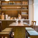 Avec un espace de 200 m² imaginé par le cabinet londonien Alexander Waterworth Interiors, les lampes de verre ont été soufflées par Jeremy Maxwell Wintrebert, et les tasses et les assiettes viennent de J.C. Herman Ceramics, manufacture basée aux Pays-Bas. C’est tout un petit monde à qui l’on doit l’aspect esthétique de Bonhomie.