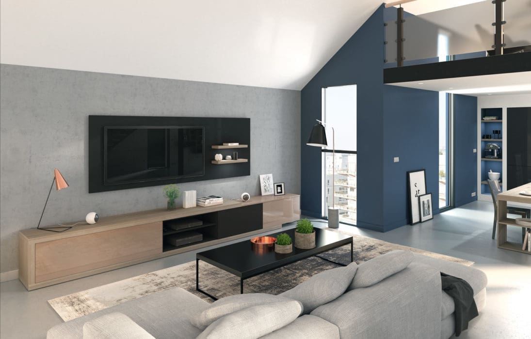 Le petit plus : les réglettes lumineuses LED. Équipant également les niches, elles inscrivent l’esprit de la cuisine dans un coin salon conçu en parfaite harmonie avec le reste.
