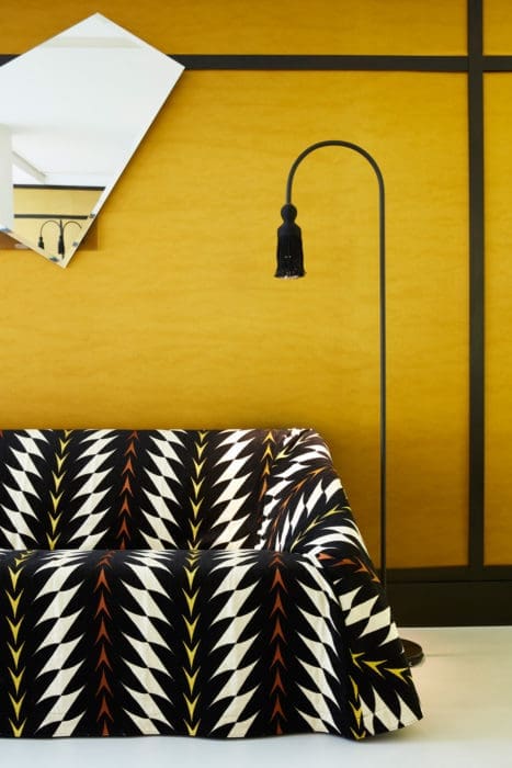 S’inspirant de la boutique Big Biba à Londres, il crée une ambiance seventies entre pop art et minimalisme autour des pièces de sa nouvelle collection dont la lampe Sunset et des draps brodés main Sun king, inspirés des costumes de Louis XIV. Un univers onirique riche en références culturelles