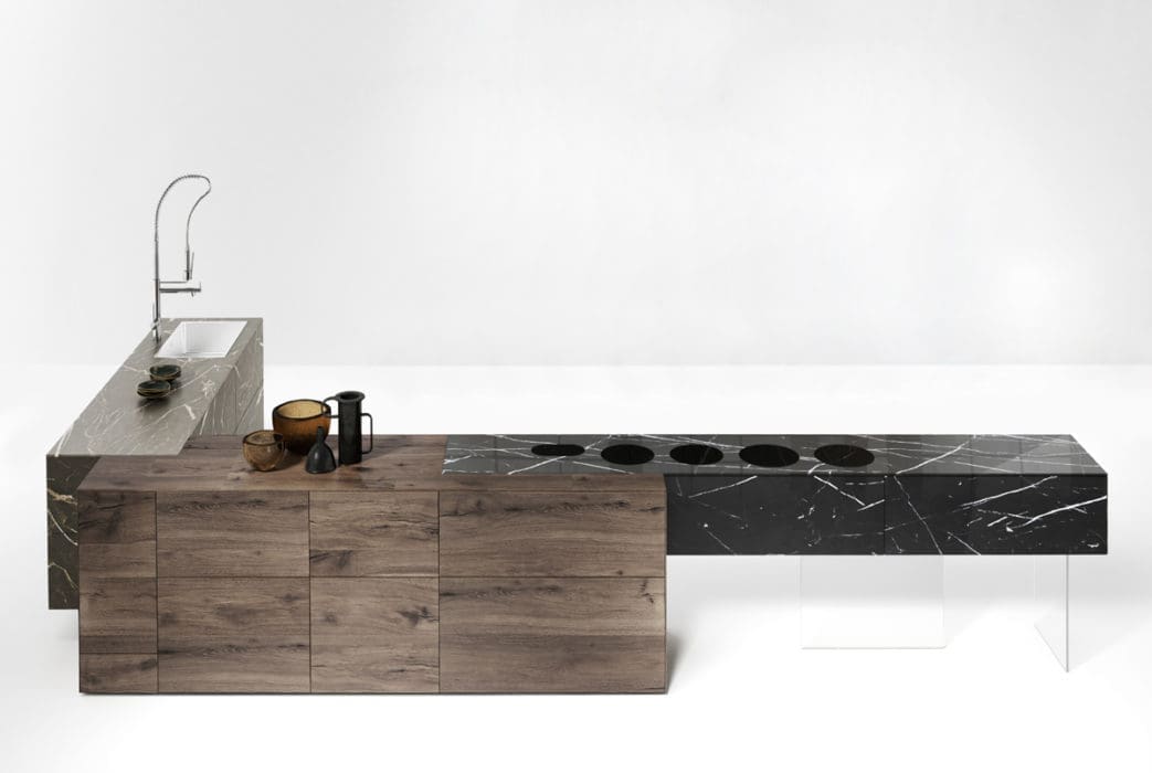 Lors du Salon du Meuble de Milan 2018, LAGO a dévoilé ses nouveautés parmi lesquelles la Fusion Kitchen dont le design moderne imbriquant pièces de marbre et bois Wildwood a attiré tous les regards. Un modèle tout en finesse et en précision pour une cuisine élégante et originale.