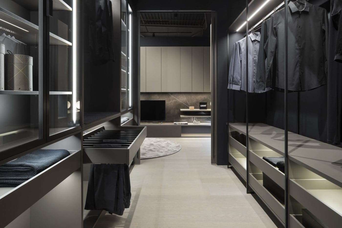Jouissant d’une maîtrise reconnue de l’agencement et de l’esthétique des formes, matières et couleurs pour la cuisine, LEICHT s’implique désormais dans la conception du dressing visant ainsi à affiner l’harmonie générale des habitats. Espace dans l’espace créé avec le concept d’étagères FIOS, quelle que soit la configuration du lieu, le dressing « s’expose » avec les systèmes modulaires les plus étudiés, des portes coulissantes du sol au plafond et les laques et bois les plus variés.