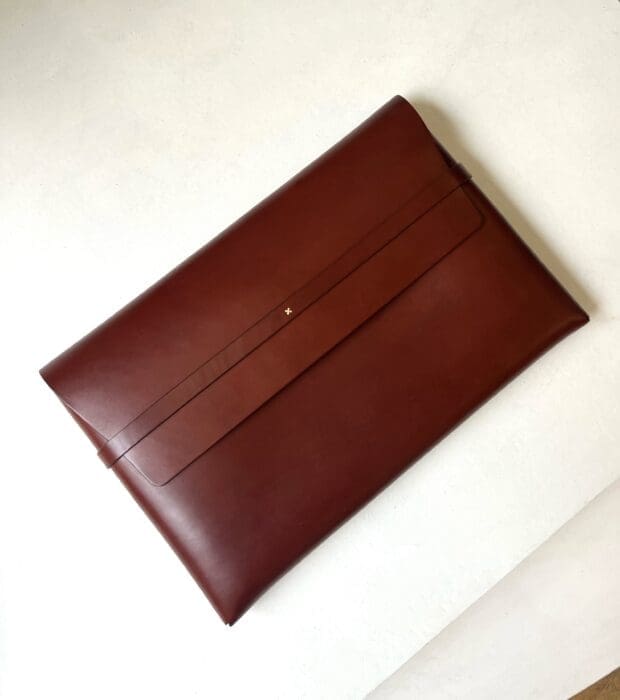 Mon tote bag A3 ! Il s’agit en fait d’une pochette grand format réalisée par Robin Poupard, mon ami ébéniste qui travaille -aussi le cuir. Moi qui suis toujours encombrée, elle me permet de transporter mes plans en toute sécurité.