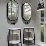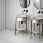 Les designers Andrea Parisio et Giuseppe Pezzano réinterprètent avec modernité l’iconique salle de bains du début du 20e siècle pour Ceramica Cielo. Tout en céramique et en bois laqué, elle devient élégante et s’affirme avec un style contemporain. Le plus ? Elle se marie parfaitement avec le « Round box mirror » issu lui aussi de la collection « Catino ».