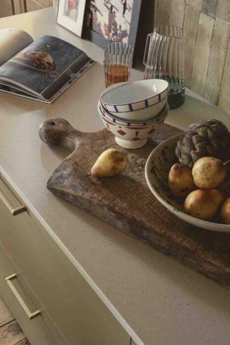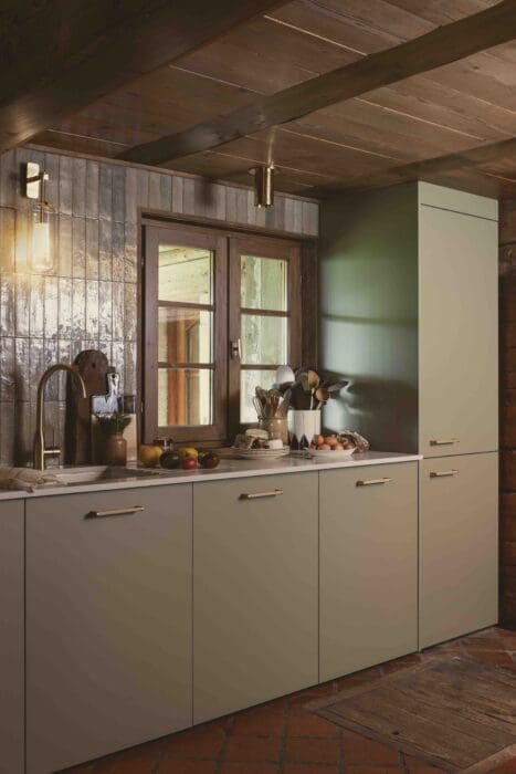 « Sarah inscrit plus que jamais ses projets dans une dimension durable, à travers des produits intemporels et conçus de manière pérenne. C’est aussi cette approche qui nous a particulièrement séduits chez elle, car la durabilité est absolument primordiale pour Mobalpa. Nous partageons les mêmes valeurs et les mêmes convictions » déclare Antoine Salaün, directeur marketing Mobalpa. Preuves à l’appui : les façades vert olive mat ont été fabriquées à partir de panneaux issus à 100% de matériaux recyclés, comme d’ailleurs le plan de travail qui, lui aussi associe design et écoresponsabilité.