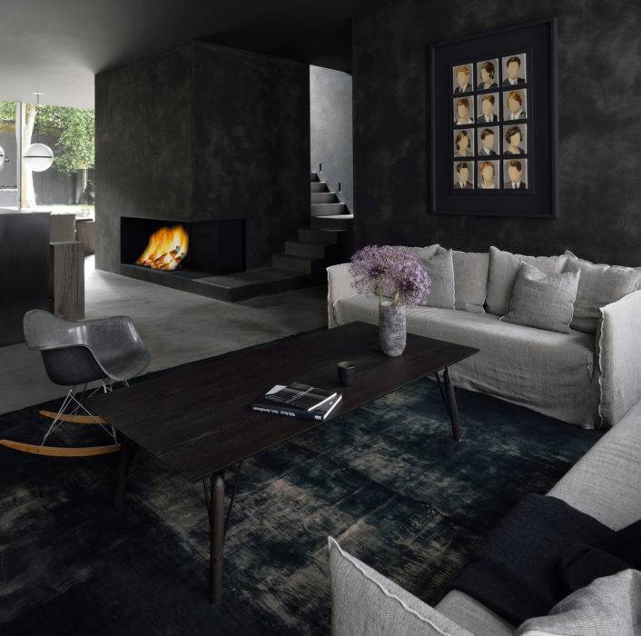 Apaisant, élégant, en écrin idéal aux meubles et accessoires colorés, le gris et ses nuances ont longtemps été une toile de fond évidente pour de nombreux designers et architectes. Mais dans la maison bruxelloise d’Arnaud Masson, entrepreneur en bâtiment à la tête de la société Permis de Construire, ces teintes sombres spectaculairement apposées ainsi que la richesse de textures contrastées s’offrent une nouvelle dimension, totalement envoûtante.