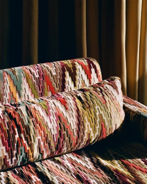 Gros plan sur le tissu Pierre Frey du canapé « On the Rocks ».