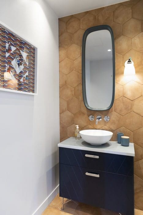 Les rangements ne sont pas oubliés : nombreux, créés sur mesure afin de pourvoir aux besoins de cette famille de cinq personnes, ils optimisent la place au maximum. Côté décoration, les idées et les associations viennent à Tatiana au fil de l’aménagement, comme des évidences. Elle propose les matériaux, les meubles et les accessoires, puis en discute avec les maîtres des lieux, qui apprécient ses trouvailles et ses mélanges de styles.
