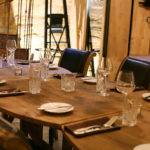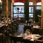 Dans cette véritable machine à remonter le temps située au début du Faubourg Poissonnière, ces deux amoureux des plaisirs de la table nous emportent avec eux quelques siècles en arrière. Nous voici à présent au cœur des années 1830 grâce à Philippe Model. Après avoir chiné des pièces toutes plus authentiques les unes que les autres, le scénographe, décorateur et coloriste a su recréer une ambiance où l’élégance se lit dans la noirceur romantique de l’espace. Mobilier « abimé », plafonds affaissés à compartiments de plaques de cuivres oxydés, pilastres et colonnes, miroirs vieillis, rien ne manque pour laisser croire aux curieux gourmands qu’ils tournent les pages du Ventre de Paris de Zola, au fur et à mesure que leurs assiettes généreuses se présentent à eux. En cuisine, Jonathan Hamel met son cœur à l’ouvrage et propose des viandes aux belles cuissons et minutieusement assaisonnées. Produits d’exception se mêlent à un décor étonnant où l’on se laisse tendrement prendre au jeu des plaisirs d’antan.
