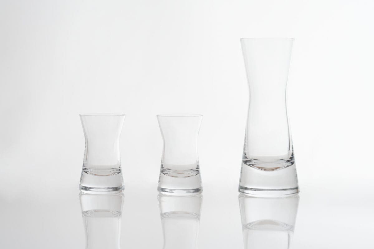 le service à saké « Sens », les verres à whisky « Minamo », les miroirs décoratifs « Hinode »
