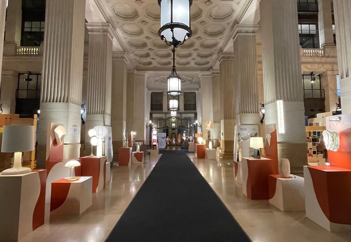 Dans une scénographie inédite, la matière s’est réinventée : au sein de la galerie de luminaires sélectionnés par Anne-Sophie Pailleret, à travers les panneaux décoratifs mis en scène par Brice Tual, ou encore dans l’incroyable fresque réalisée avec des matériaux écoresponsables et imaginée par Frédéric Imbert.