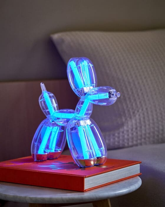 Jeff Koons et Lexon : une rencontre inattendue qui fait des étincelles. Le célèbre Balloon Dog, imaginé il y a plus de trente ans par l’artiste américain, se métamorphose ici en lampe ou en enceinte sous l’impulsion de Lexon. Une alliance réussie entre art et technologie qui séduira, à coup sûr, les amateurs de design comme les collectionneurs d’art contemporain.