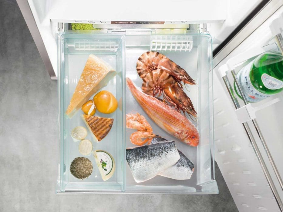Liebherr propose 3 niveaux de conservation longue durée qui se distinguent du bac à légumes classique. Ces zones présentent chacune des conditions bien particulières pour la conservation prolongée des produits frais. Le système BioCool pour la conservation des légumes (température juste au-dessus de 3 °C et un taux d’hygrométrie de 80-90 %), le BioFresh pour les aliments fragiles tels que les fruits, viandes, charcuterie (température juste au-dessus de 0 °C et un taux d’hygrométrie réglable entre 65 et 95 %), permet de conserver les aliments jusqu’à 3 fois plus longtemps mais aussi le BioFreshPlus, qui va encore plus loin, avec sa fonction pour abaisser la température à – 2 °C, parfait pour les poissons et fruits de mer.