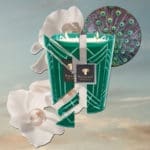 Palais faisant l’éloge du célèbre monument et la Bougie Cashmere. Celle-ci est décorée de dessins de cashmere, dans la trame art déco de la collection High Society, fruit de la collaboration établie avec Thierry Larcher.