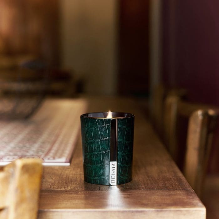 Les bougies Belaia sont proposées dans 6 parfums élaborés à Grasse : Monoï, Tubéreuse, Vanille, Thé Myrtille, Sable chaud et Papier d’Arménie.