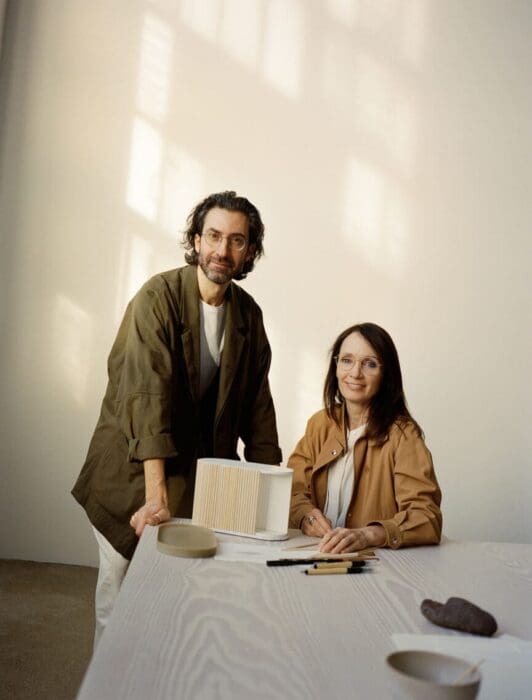Pont sonore entre le minimalisme scandinave et le raffinement du design italien, «Beosound A5», enceinte nomade dessinée par GamFratesi pour Bang & Olufsen, s’invite à l’intérieur comme à l’extérieur et se décline en deux finitions : une première en aluminium classique associé à une façade en fibres végétales tissées et une poignée en chêne clair, et une seconde en aluminium noir anthracite accompagné d’une façade et d’une poignée en chêne foncé. « Des traditionnels chapeaux Panama portés sur les plages aux détails en cuir tissé à la main des chaises danoises des années 1960, les mélanges de matériaux naturels ont guidé notre parcours de création », explique le duo de designers italo-danois.