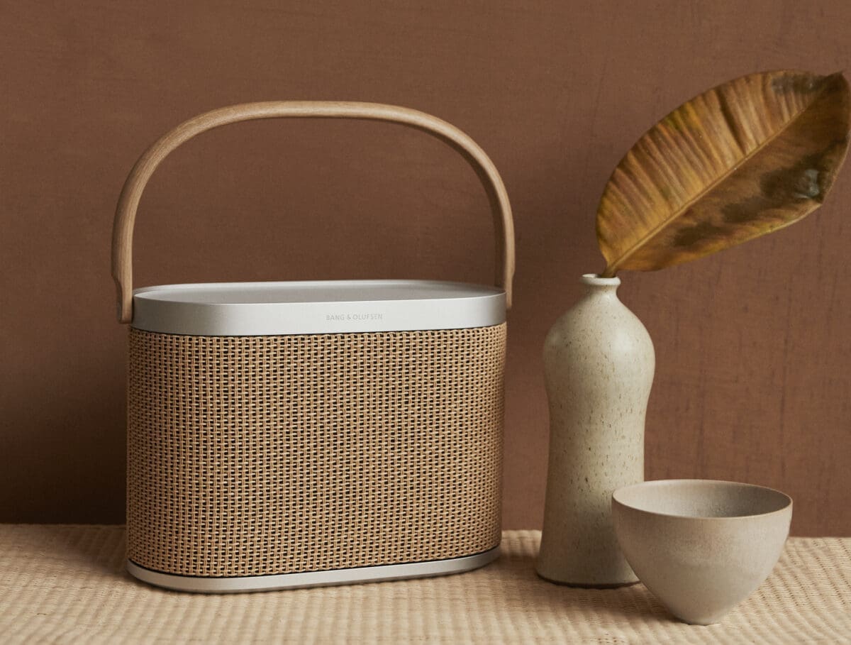 Pont sonore entre le minimalisme scandinave et le raffinement du design italien, «Beosound A5», enceinte nomade dessinée par GamFratesi pour Bang & Olufsen, s’invite à l’intérieur comme à l’extérieur et se décline en deux finitions : une première en aluminium classique associé à une façade en fibres végétales tissées et une poignée en chêne clair, et une seconde en aluminium noir anthracite accompagné d’une façade et d’une poignée en chêne foncé. « Des traditionnels chapeaux Panama portés sur les plages aux détails en cuir tissé à la main des chaises danoises des années 1960, les mélanges de matériaux naturels ont guidé notre parcours de création », explique le duo de designers italo-danois.