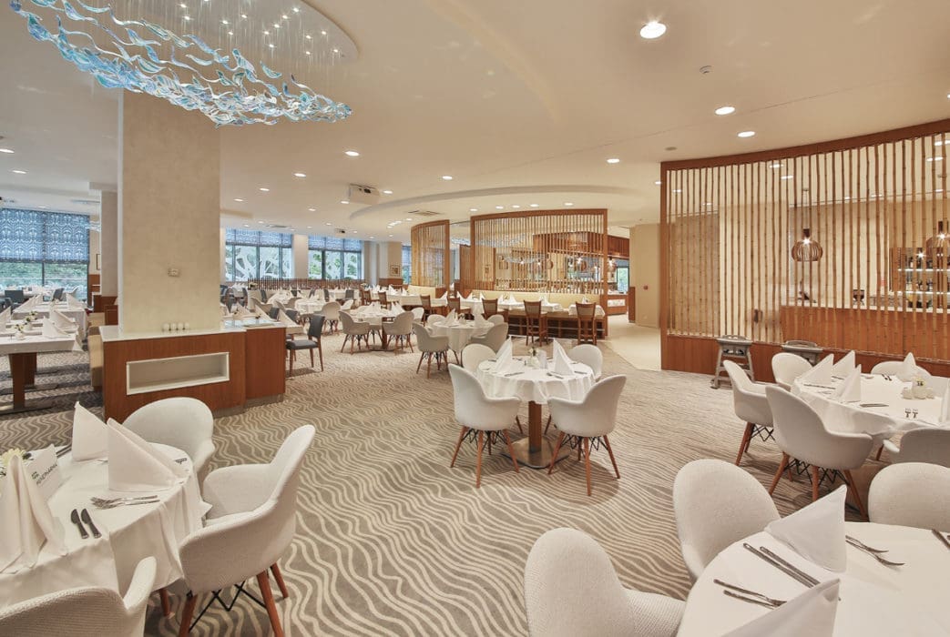Deux restaurants, un plutôt familial et un ’autre plus haut de gamme pour deux esthétiques aux identités fortes et bien distinctes malgré l’omniprésence du bois dans ces deux espaces. Pour permettre aux voyageurs de profiter au maximum de leur séjour, piscines, terrasses extérieures et luxueux Spa sont également bien évidemment au rendez-vous.