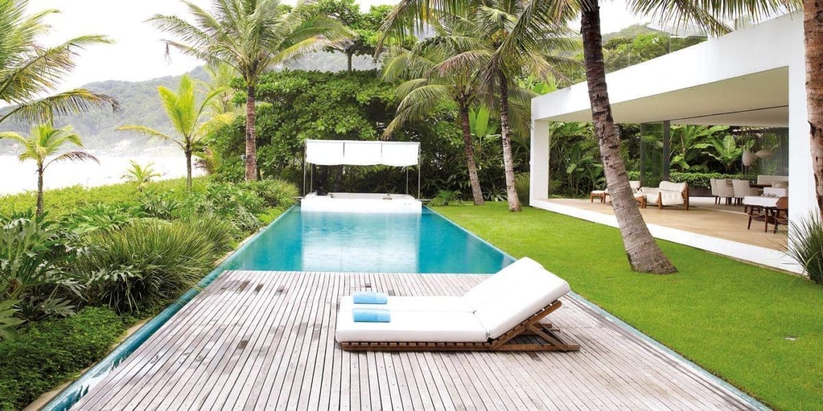 Sur une plage brésilienne de rêve, l’architecte sud américain Isay Weinfeld a posé entre sable et jungle, un bungalow moderne à la blancheur éclatante et aux formes linéaires très pures.