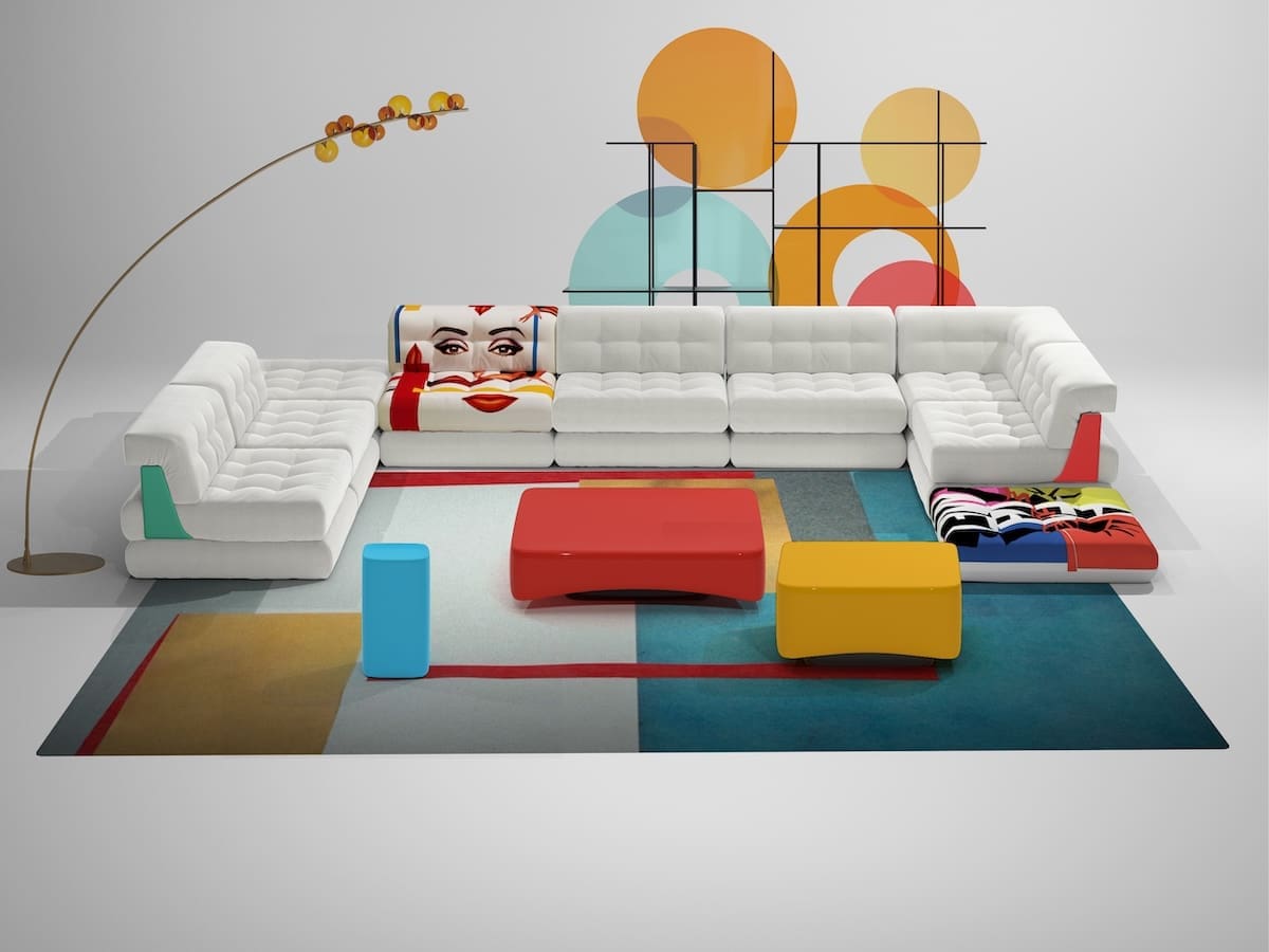 C’est l’histoire d’une rencontre, d’une histoire d’amour et d’amitié : celle entre la marque française d’ameublement Roche Bobois et le réalisateur espagnol Pedro Almodóvar. L’univers du cinéaste — tout en couleurs, en contrastes, en jeux de matières et de lumières — est transposé ici à travers des fauteuils, des tapis, une bibliothèque et de jolis accessoires. Le célèbre canapé Bubble de Sacha Lakic (qui célèbre ses 10 ans) se pare alors de rouge, de jaune, de bleu ou de vert ; les tapis subliment les fleurs ; et les silhouettes des muses du réalisateur deviennent les Marilyn du jour, dans des créations très warholiennes. À découvrir… et à adopter, si vous l’osez !