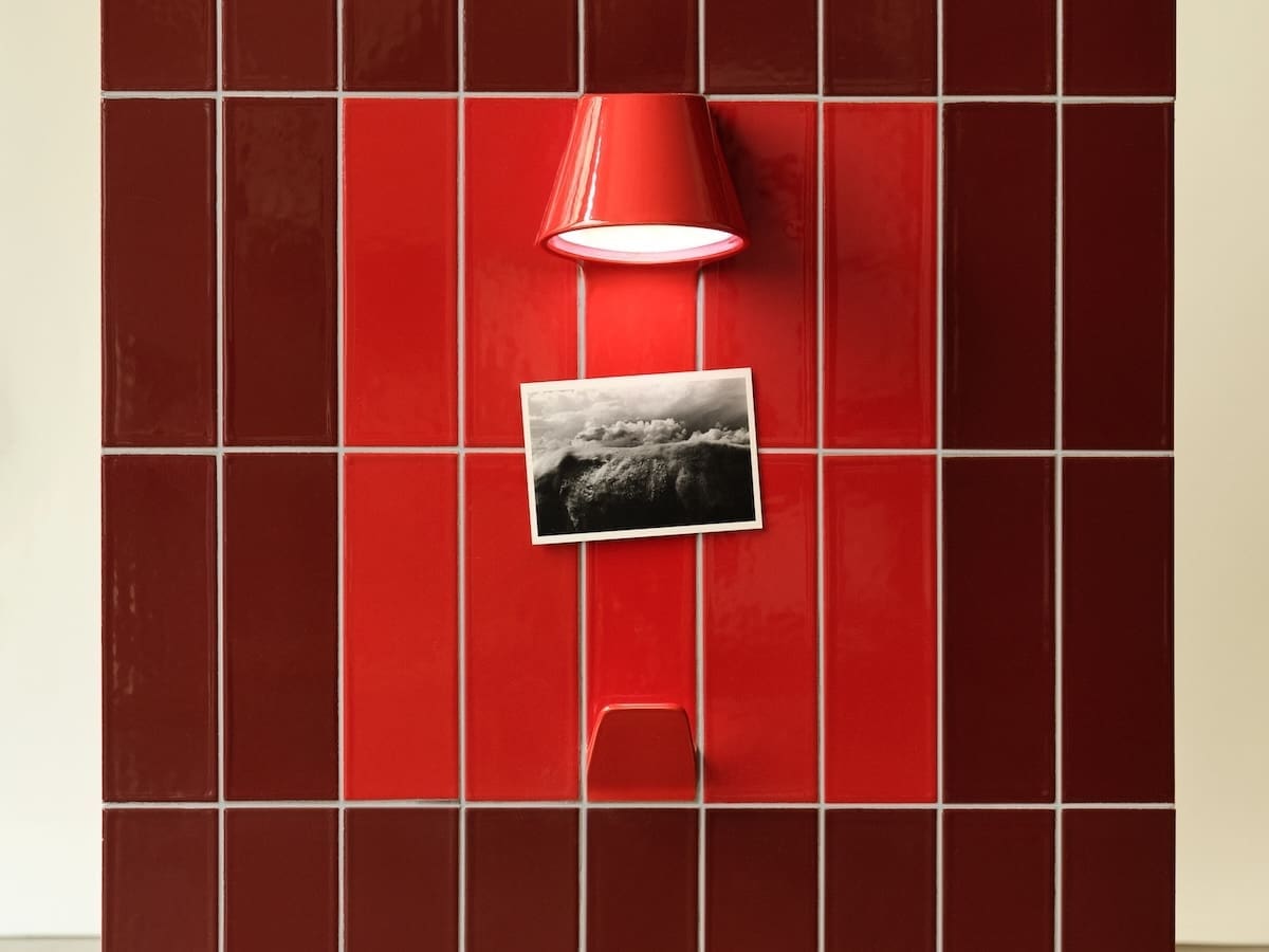 Discrète, elle joue la carte du ton sur ton, tel un caméléon. Elle semble flotter sur le mur et s’allume avec élégance, quand vient son heure. Cette lampe s’intègre parfaitement dans ce mur de céramique. À moins que ce ne soient les carreaux eux-mêmes qui s’harmonisent pour la mettre en valeur… Comme un jeu de cache-cache, la gamme UU Tiles décline aussi des patères, parfaitement intégrées au mur, sur le même principe. Fabriqués en Normandie, ces carreaux en céramique sont au cœur du projet imaginé par le studio Unknown Untitled, qui brouille ici les frontières entre décoration et aménagement, pour un rendu à la fois esthétique, pratique et surprenant.