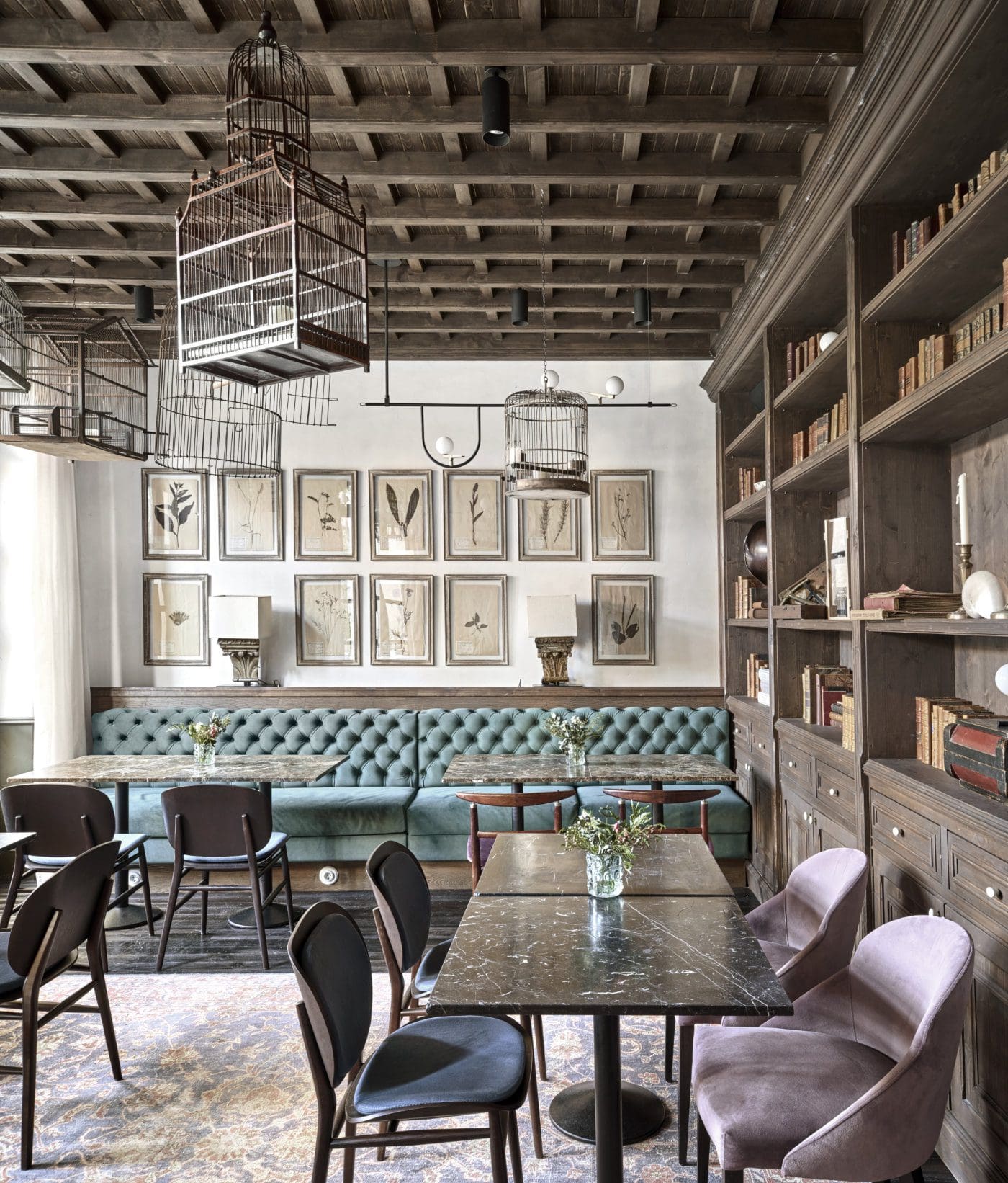 Par la suite, les éléments nécessaires à la nouvelle utilisation de l’hôtel et à l’ouverture de la maison et du jardin à la ville ont été identifiés. À cette fin, une série de stratégies architecturales ont été conçues et développées dans tout le bâtiment comme un ensemble d’interventions contemporaines distinctives en dialogue avec le bâtiment existant. Au rez-de-chaussée un couloir verdoyant de végétation envahit les salles à manger reliant le jardin avec la cour et la rue …