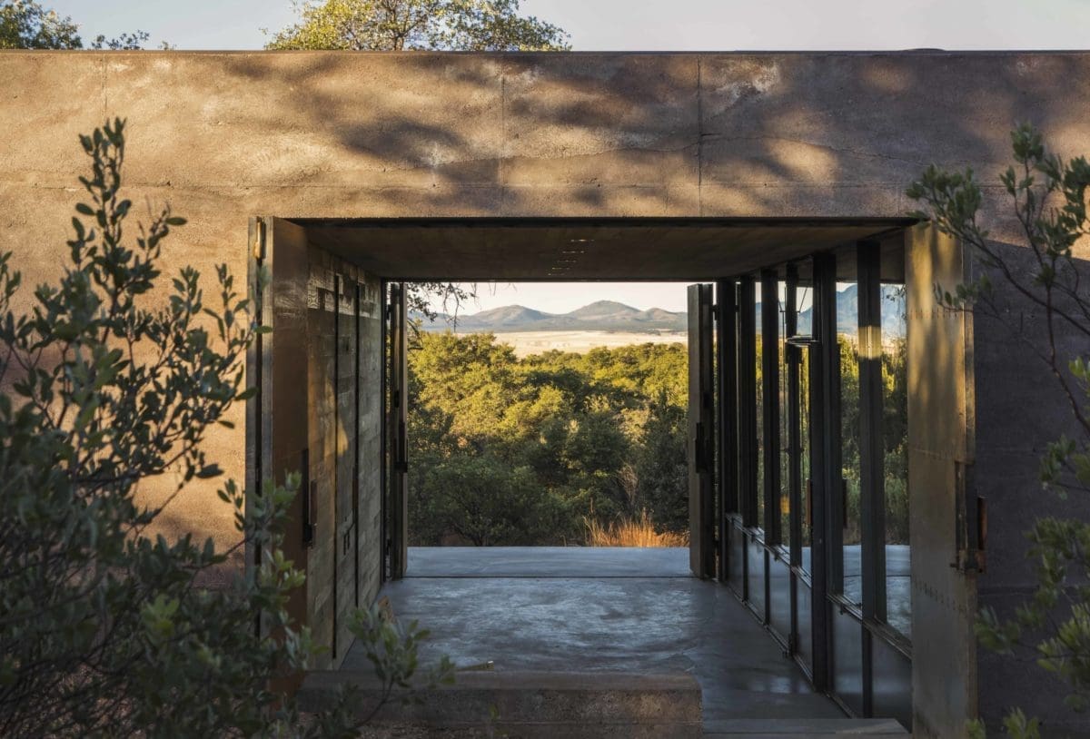 L’emplacement offre une perspective des montagnes lointaines à l’ouest – et est à seulement 25 kilomètres au nord de la frontière américano-mexicaine. En raison de cette proximité de la frontière et de la circulation piétonne liée à l’immigration, le propriétaire a demandé une structure impénétrable.