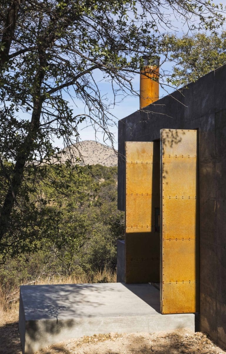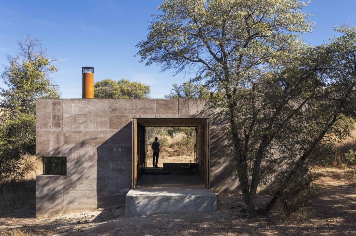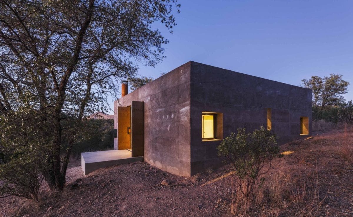 Casa Caldera se situe dans un paysage désertique vaste et éloigné, dans l’espace entre les arbres. Leurs branches projettent des ombres sur la structure , cet équilibre – entre atmosphère apaisant et sentiment de sécurité au milieu d’un vaste désert – est au cœur du projet.