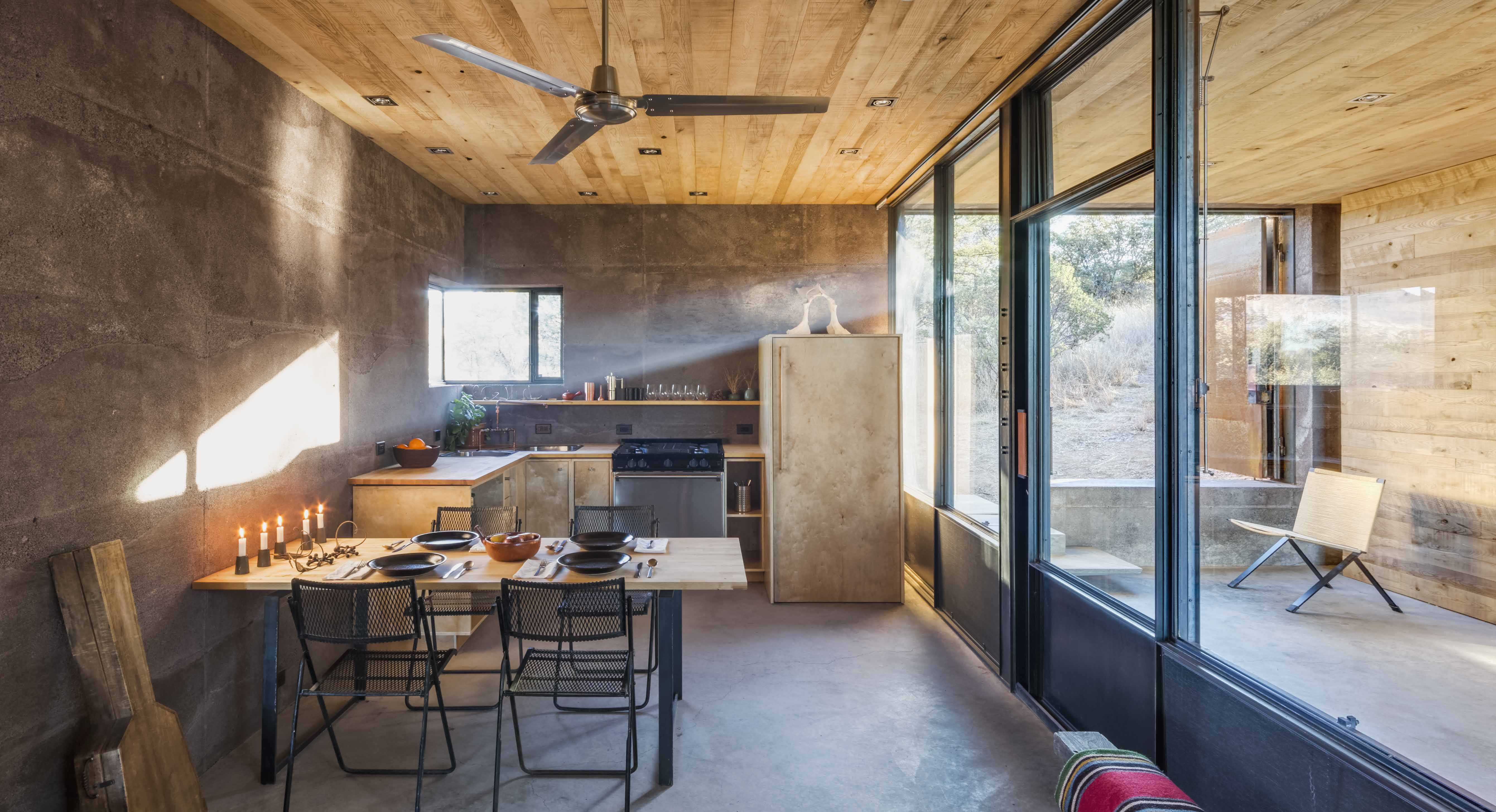 La maison est entièrement autonome : le refroidissement est assuré par une ventilation transversale naturelle soigneusement équilibrée à travers les ouvertures des fenêtres zaguan et stratégiquement placées, tandis que le bois de chauffage provenant de la propriété fournit le chauffage. L’eau provient d’un puit et l’énergie solaire est utilisée pour les besoins électriques et électroménagers minimaux. Casa Caldera se trouve légèrement sur le sol de son vaste paysage désertique.