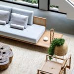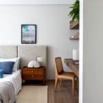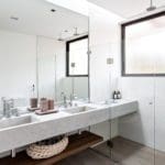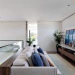 Les suites sont ornées de grandes ouvertures donnant sur la terrasse linéaire avec une pergola. Dans les salles de bains, des puits de lumière ont été conçus au-dessus des comptoirs pour permettre à la lumière naturelle d’entrer et de réduire la consommation d’électricité. Un grand espace intérieur abrite la double hauteur et laisse place à la circulation qui relie les suites à l’étage supérieur.