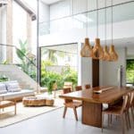 L’objectif était d’intégrer les environnements internes et externes, et la séparation entre eux au rez-de-chaussée est presque imperceptible. Le jardin vertical, constitué des piliers structurels de la maison, apporte la nature à l’espace gourmand et à l’espace piscine couvert.