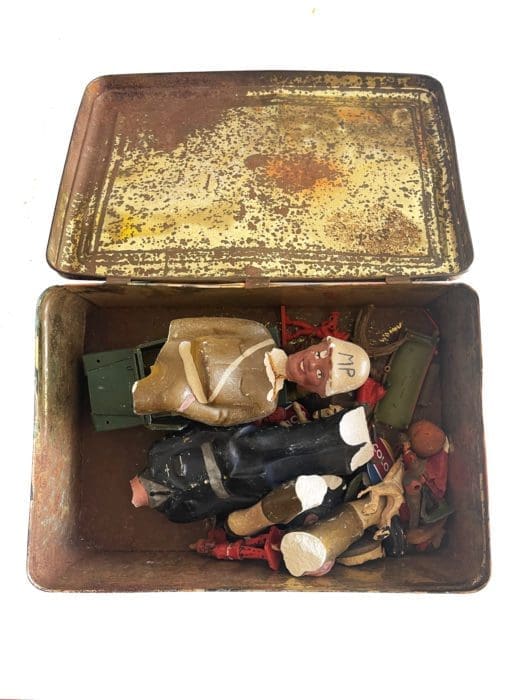 « Je ne suis pas fétichiste. Certes, je suis attaché à mes drapeaux, à mes dessins… Si je devais cependant garder une chose, ce serait peut-être cette petite boîte rouillée, affreuse avec ses ananas dessus, sans doute la boîte la plus moche qui soit… mais qui contient des fragments de mon enfance : les soldats avec lesquels j’ai joué quand j’avais 8-10 ans. Ils sont tous très mal en point, estropiés… C’est la guerre, à l’image de ce qui nous arrive en ce moment en Europe. Et à la fois, je me dis que parfois, il faut peut-être lâcher prise sur son passé. Personnellement je suis devenu, grâce à cette expo au Centre Pompidou, l’architecte de mon enfance retrouvée. »