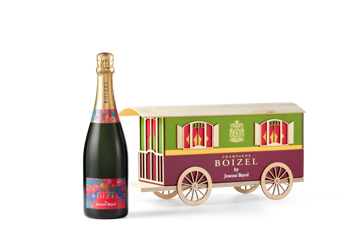 Jeanne Bayol a dessiné pour Boizel un coffret poétique présenté dans sa roulotte (85 €, Boizel).