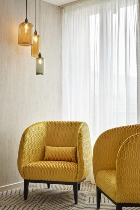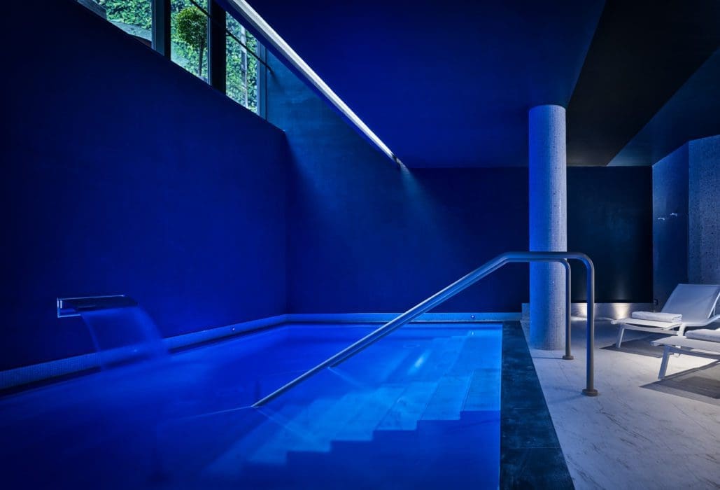 Le parti pris déco Au sous-sol, l’espace bien-être signé Deep Nature, marque naturelle, 100 % française, allie matières brutes, verre et miroirs. Entre les cinq cabines de soins, la piscine intérieure, façon parcours marin, le bassin aux jets hydromassants, la salle de fitness, le sauna et le hammam, le spa joue la carte tonique.