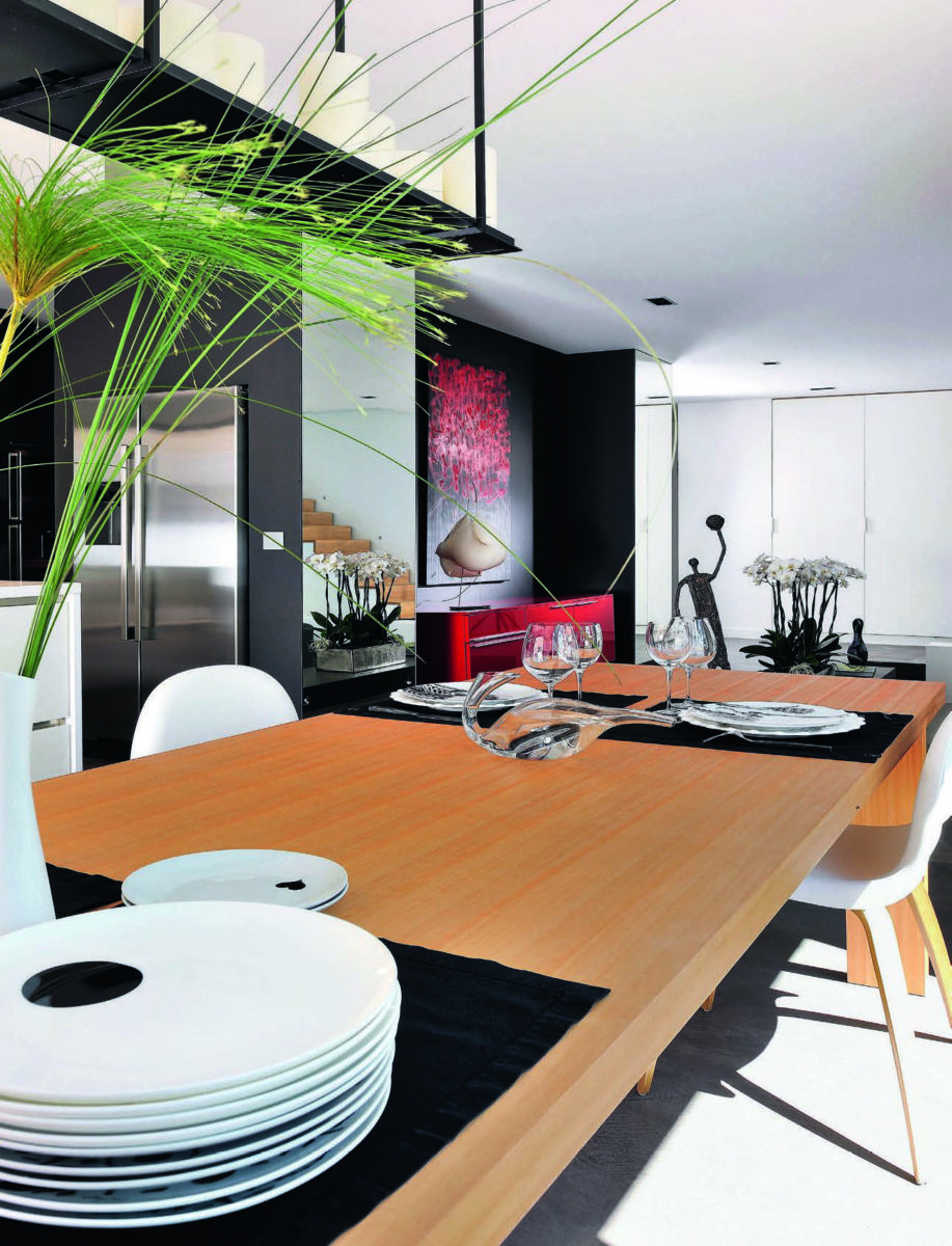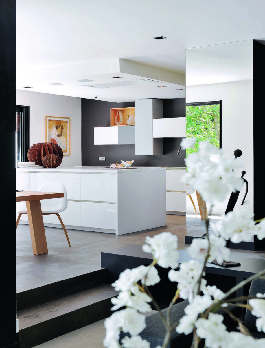Entre les arbres, l’architecte Jean Laurens Berge dresse une maison urbaine, blanche aussi douce que facile à vivre, où chaque membre de la famille dispose d’un espace riche d’une vue privilégiée et d’une terrasse personnelle. Curieux de tout, amoureux des belles cho ses, le maître de maison adepte de précisions, n’hésitera pas à en modifier le dessin à plusieurs reprises pour arriver à ses fins. Sélectionnant peintres et autres spécialistes du traitement des sols avec la décoratrice, il va s’impliquer tout autant, rivé dans l’idée d’élaborer un cadre de vie sobrement contemporain qui exclut un design froid voire trop élitiste pour une famille constamment en mouvement.