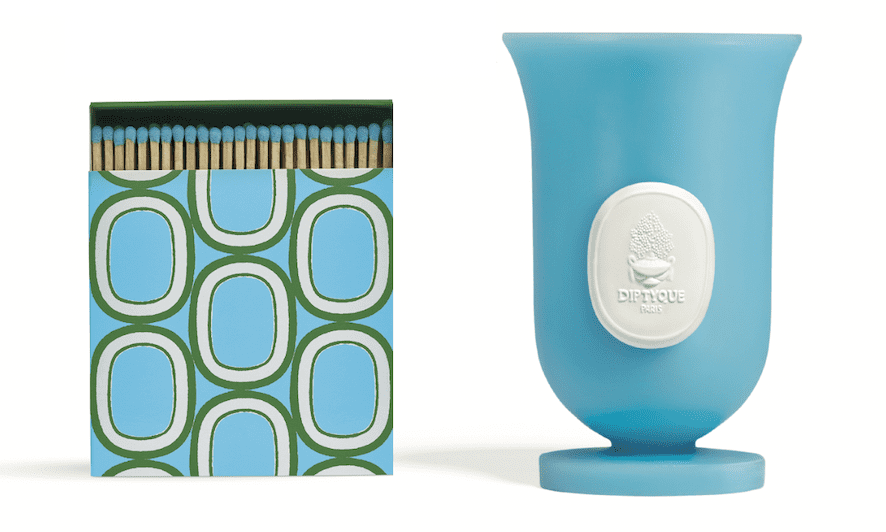 Saison bleutée pour Diptyque qui revisite son vase Médicis en cire azur et ses célèbres boîtes d’allumettes en bleu Méditerranée. Le parfumeur a aussi fait appel à Alexandre Benjamin Navet, qui a illustré certains pots de ses bougies parfumées. Autre nouveauté, la célèbre senteur Figuier dans un pot en céramique émaillée d’un vert bouteille idéal pour les soirées d’été.