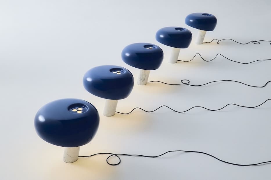 La lampe iconique Snoopy de Flos se pare cette saison d’un élégant bleu marine, ajoutant une touche contemporaine à sa classe intemporelle. Imaginée en 1967 par les frères Achille et Pier Giacomo Castiglioni, cette lampe conjugue innovation et pop culture. Son socle en marbre blanc sculptural contraste avec son abat-jour en métal émaillé, dont la silhouette amusante s’inspire du profil du célèbre chien de Charlie Brown, créé par le dessinateur américain Charles Schulz.