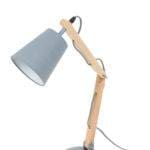 - Happy : lampe articulée de style scandinave, avec une base en métal et tasseaux en bois. Cet Abat-jour en coton est équipée d’un câble textile assorti (39,99 €)
