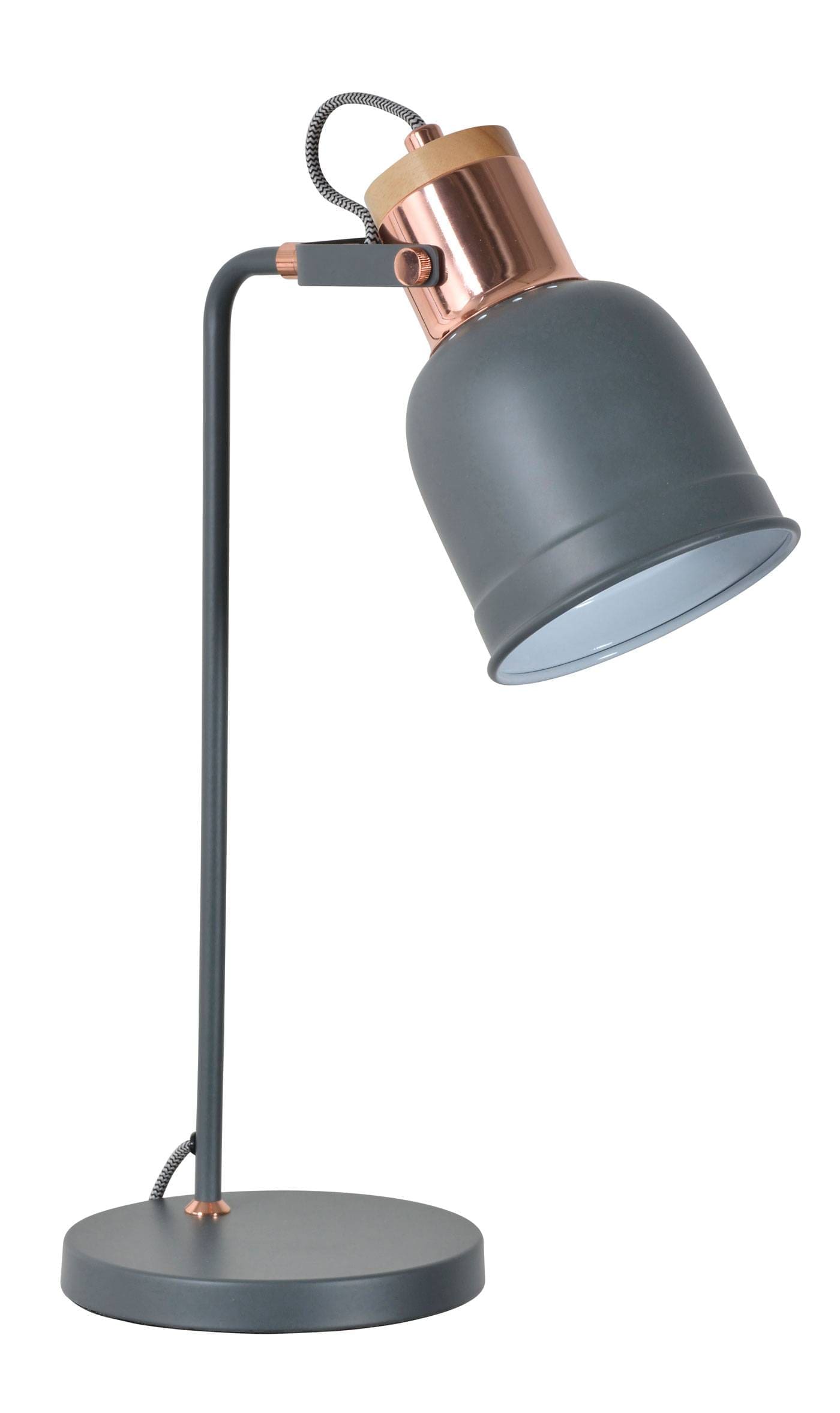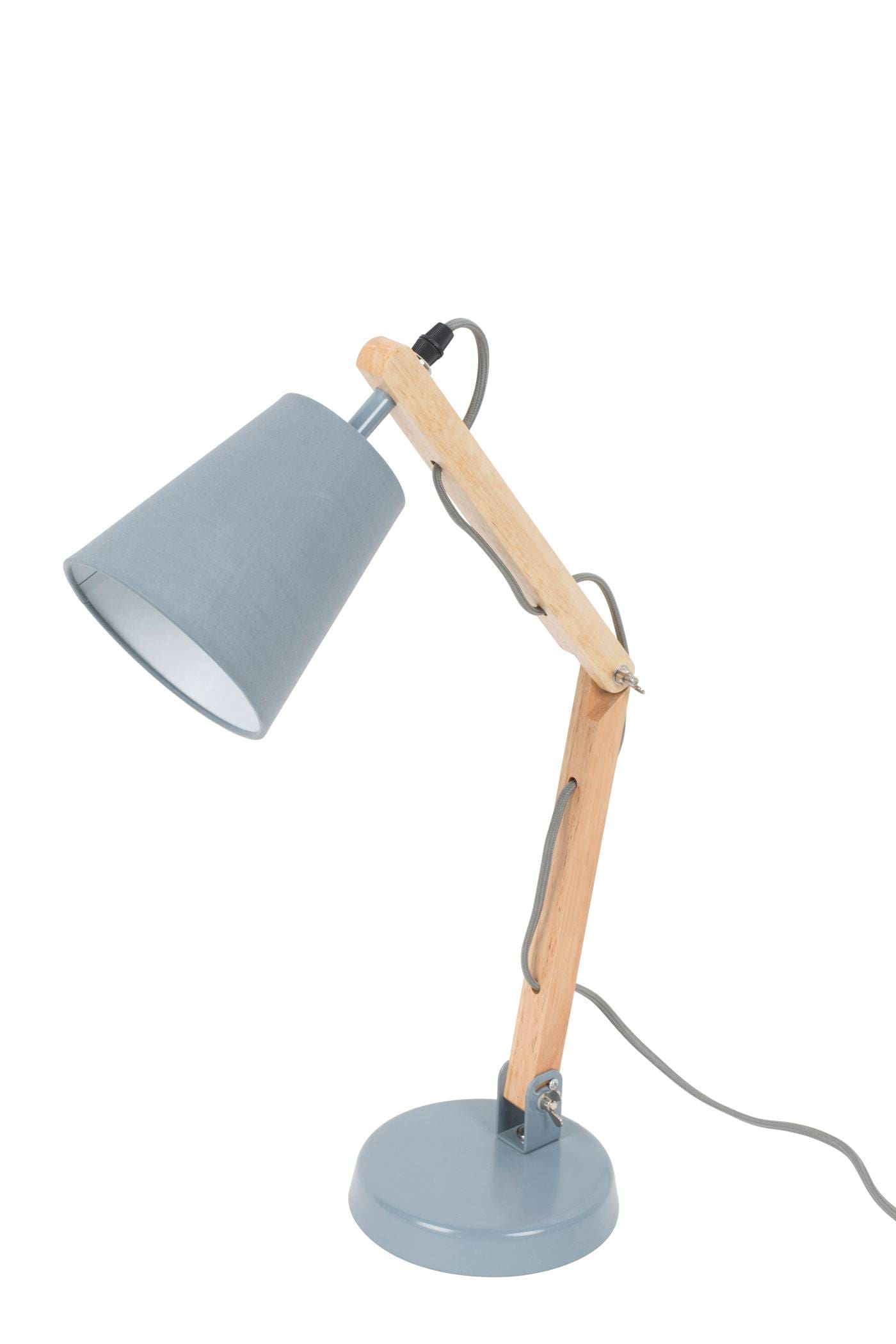 - Happy : lampe articulée de style scandinave, avec une base en métal et tasseaux en bois. Cet Abat-jour en coton est équipée d’un câble textile assorti (39,99 €)