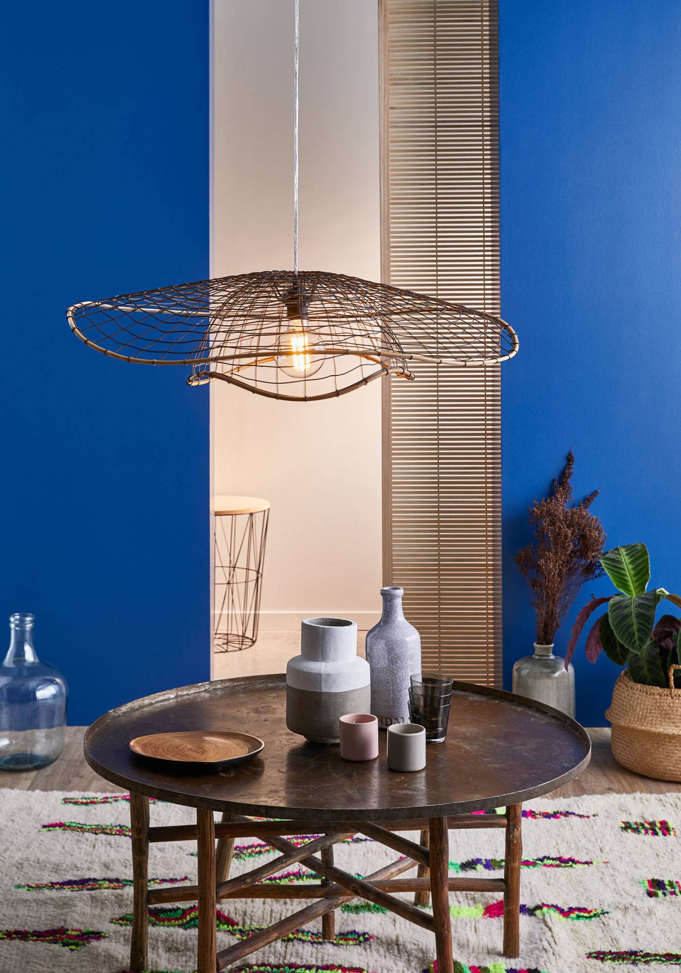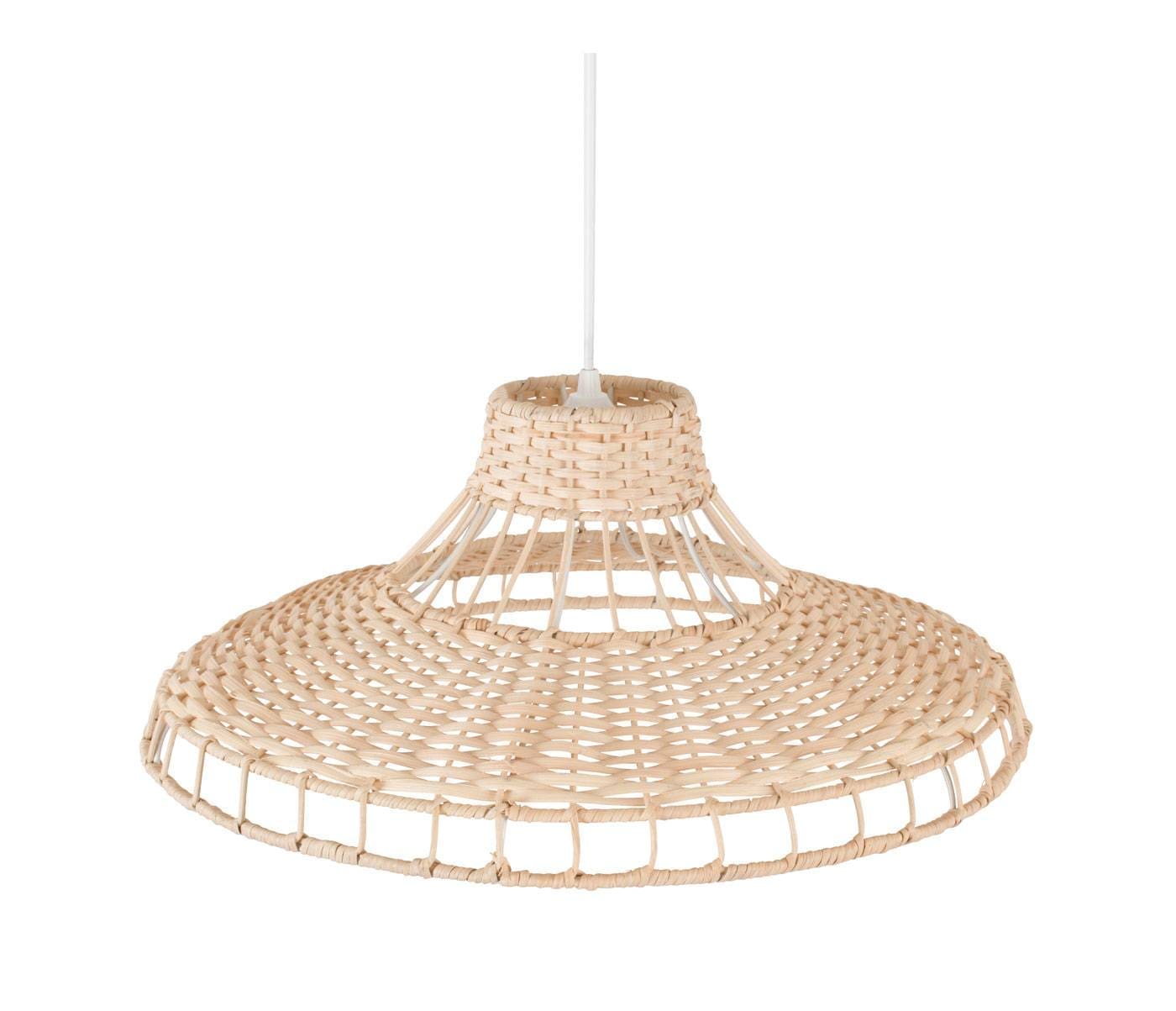 - Lanka XXL : double suspension double forme dôme plat, en métal tressé à la main et finition contour en bambou naturel. Equipée d’un cordon transparent et d’un pavillon en métal peint mat, 118,80€.