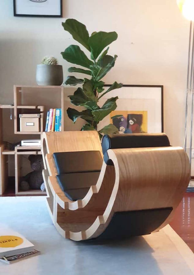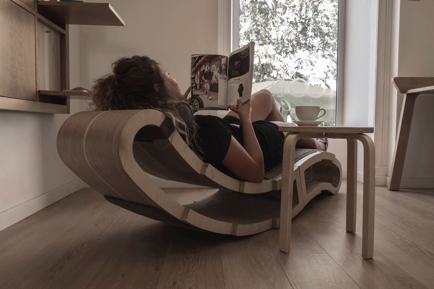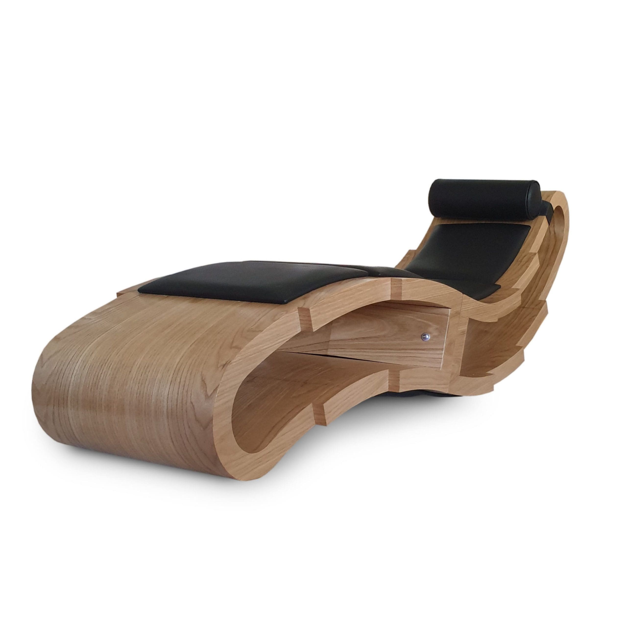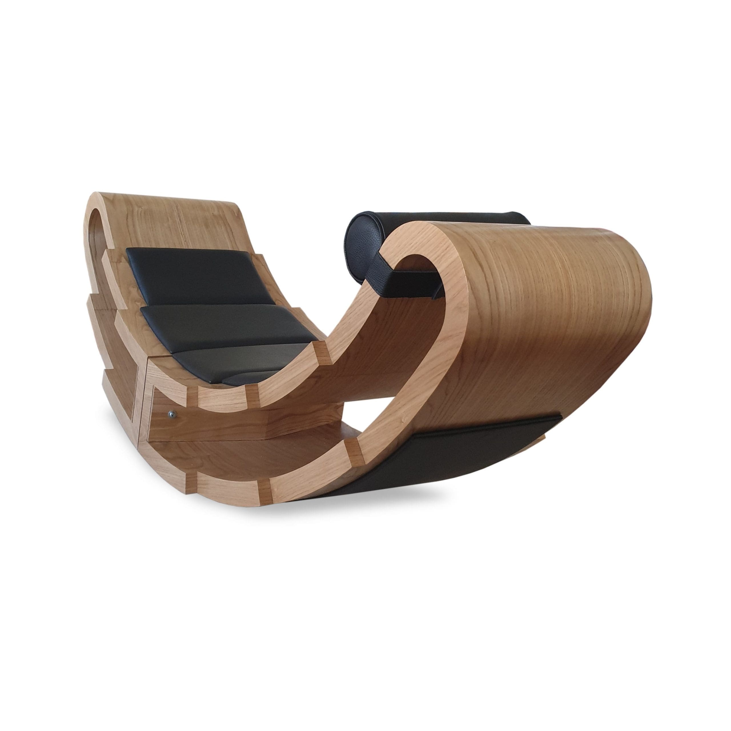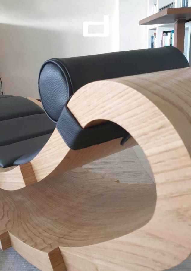La chaise longue 21 est une chaise berçante composée de 2 modules qui pivotent à 360 degrés entre eux. Essayez-le et faites-le tourner à nouveau. La chaise longue 21 est très confortable et amusante dans les deux positions.