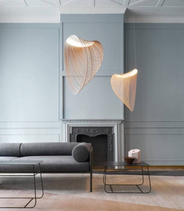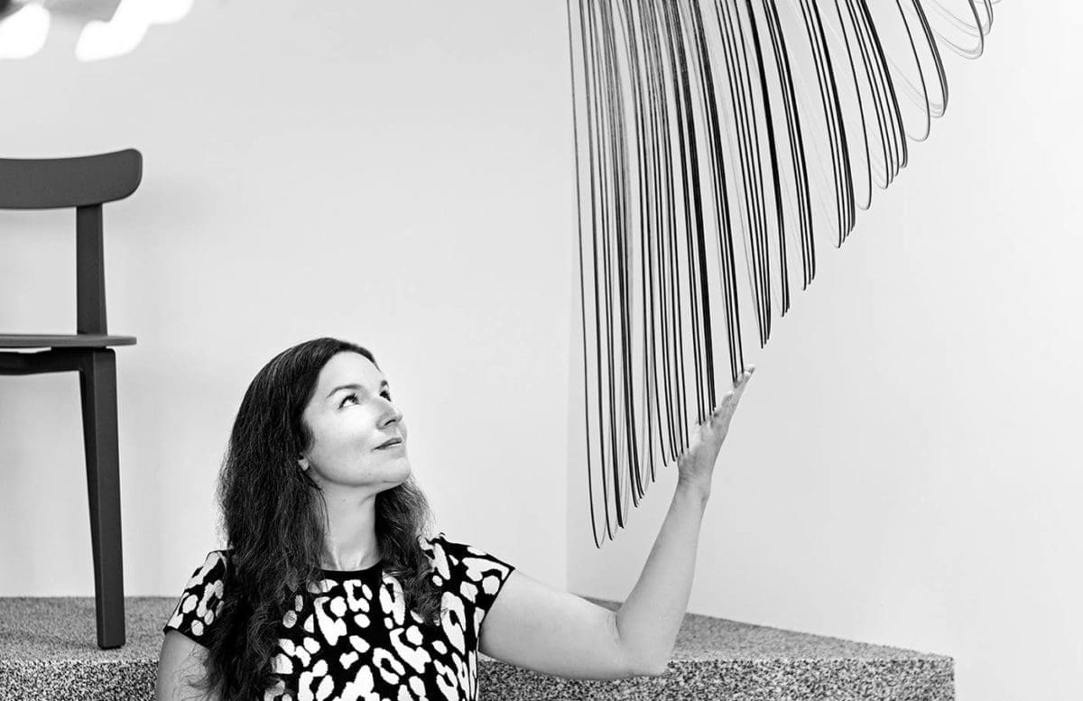 Zsuzsanna Horvath, designer hongroise installée à Copenhague, navigue entre création de mobilier et architecture avec un sens de l’espace qui défie les lois de la pesanteur. « Illan », la suspension raffinée qu’elle a signée chez Luceplan semble ainsi s’être figée avec grâce entre sol et plafond.