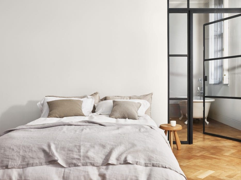 « Cette couleur fait merveille mariée à des teintes évocatrices de la nature, notamment la palette automnale (orange, moutarde, brun, pourpre, vieux rose…). Une combinaison parfaite pour installer une atmosphère à la fois chic et douillette à la maison. » Corinne Manoa-Graveleau, décoratrice et fondatrice de la marque de peinture Pure & Paint.