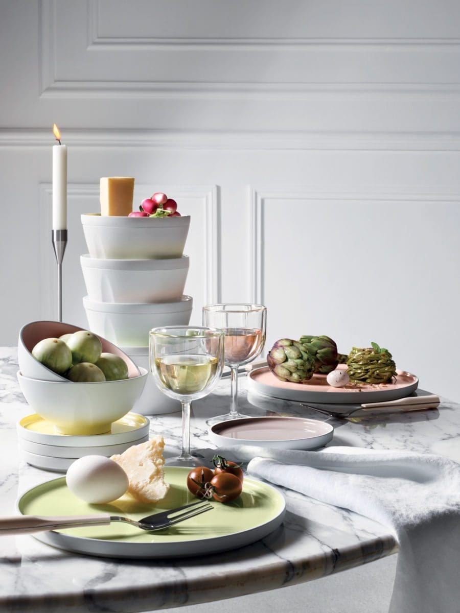 Des objets économes pour faciliter les repas du quotidien, telle est la devise de cette nouvelle ligne. Empilables, modulables, les ensembles de bols et assiettes-couvercles s’emboitent et passent du réfrigérateur au four, du four à la table et de la table au réfrigérateur.