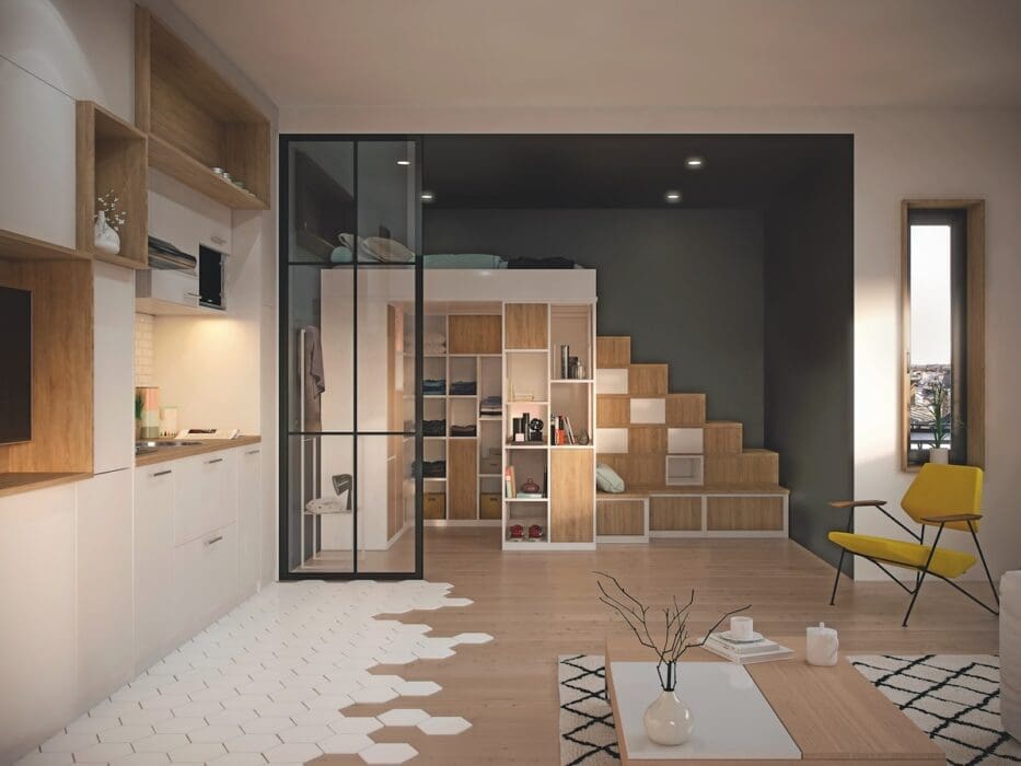 le coin nuit dans un espace ouvert. Sur devis, Archea.