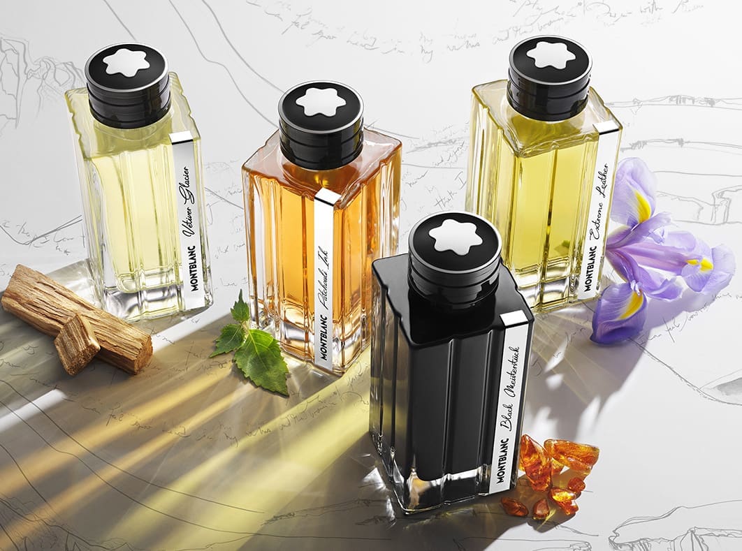 Avec sa première collection de parfums, composée de quatre eaux de parfum, la marque de luxe signe une exploration olfactive et imagée de son histoire, marquée par un objet culte du design, le stylo Meisterstück, mais aussi par l’encre, le travail du cuir et l’univers de la montagne.