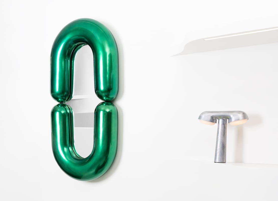 S’inspirant de notre quotidien, le designer Jean-Baptiste Fastrez imagine des objets à la frontière entre rationalité et formes libres, abstraction et narration, un univers dans lequel il navigue avec humour et subtilité, voire une certaine ironie bienvenue. Parmi eux, « Zodiac », édité par Moustache, un miroir qui, contrairement aux apparences et à son nom, n’est pas encadré de pneumatique mais de céramique. La famille s’agrandit cet hiver avec le « Zodiac Bumper », auquel sa surface en émail métallisé confère une matérialité complètement différente de ses prédécesseurs noirs ou blancs. Celle-ci apporte un effet pare-chocs et vient donner un coup d’éclat à une entrée ou vitaliser une pièce classique.